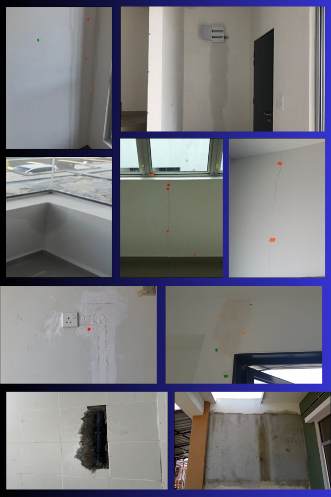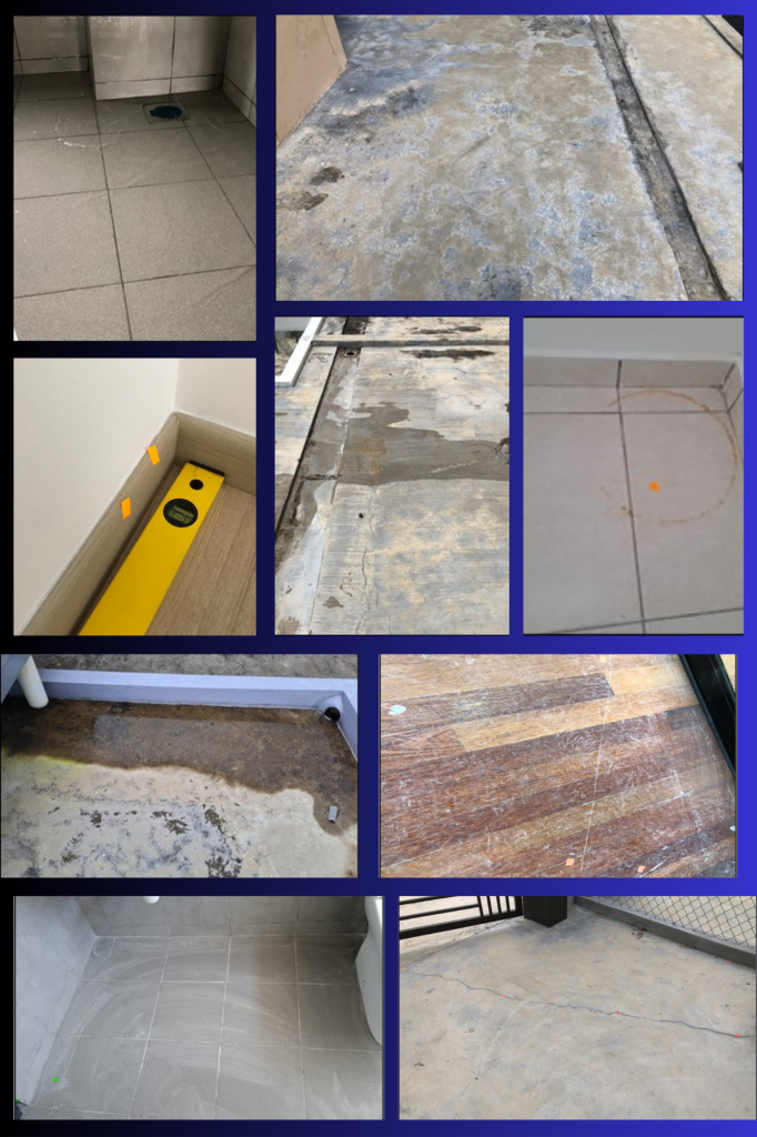 Terlalu banyak jika untuk di senaraikan semua. Tuan/Puan boleh lihat sendiri pelbagai jenis defect yang kami temui dari lantai hinggalah ke bumbung.